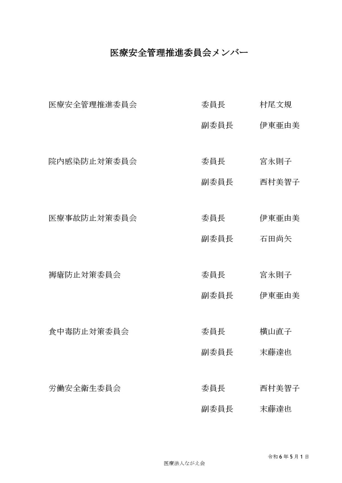 下記の表の画像をクリックすると掲示内容をご覧いただけます。厚生労働大臣の定める掲示事項療養病床受け入れの基準/個別の診療報酬の算定選定療養費療養の給付と直接関係ないサービス文書料患者様の個人情報保護について各種相談窓口意見箱の設置について医療安全管理推進委員会外来担当医表